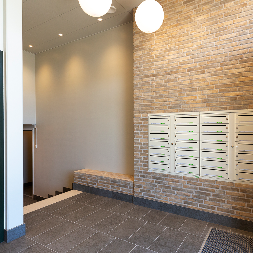 Fastigheten är förmodligen inte helt färdig när du flyttar in, utan det kan pågå byggnation i fastigheten och anläggningsarbeten utomhus under en tid – tills alla trapphus är inflyttade. Därför behöver du känna till att det kan förekomma störande ljud dagtid och att det kan finnas både damm och smuts i trapphusen, som följer med in eftersom utemiljön inte är helt färdigställd. Allmänna utrymmen som finns i huset kan ha begränsad tillgänglighet. Du har dock alltid tillgång till ditt lägenhetsförråd och din parkeringsplats, om du hyr en sådan.